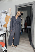 Longline Tailored Jacket. Diva wears Dulat Archive